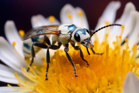 This stunning close-up macro photograph reveals intricate details of an insect, showcasing vibrant colors and textures in its natural habitat.