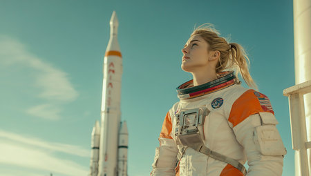 Cinematic image of an astronaut. Colorful portrait of a man with spacesuit