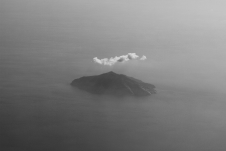 Aerial view of lonely island with cloud seen from a plane