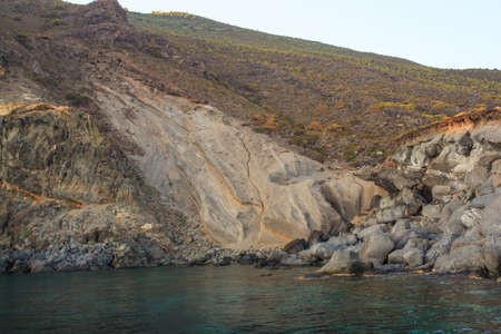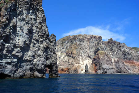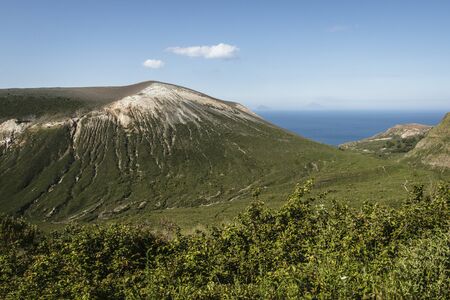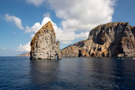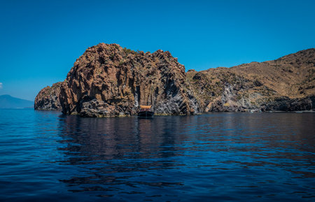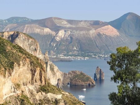 Aeolian islands. Lipari, Vulcano island, Tyrrhenian sea, Sicily, Italy. Beautiful mediterranean landscape and travel destination
