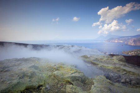 The incredible vulcano island off the coast of Sicily, Italy. vulcano has constant sulphurous fumes coming up through its vents in the crator