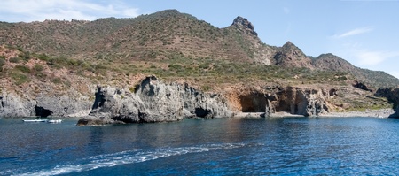 Look at the island of volcanic origin, Filicudi, Aeolian Island