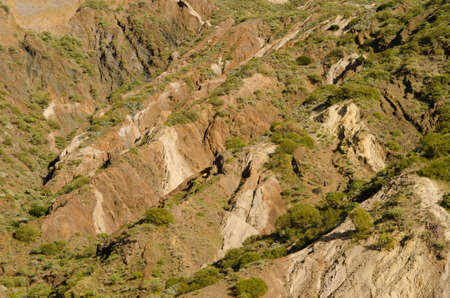 Hillside showing its different strata. Vallehermoso. La Gomera. Canary Islands. Spain.