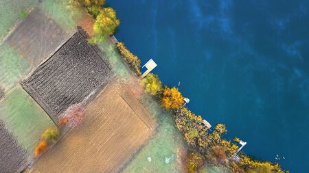 Aerial view of the boardwalk for pedestrian traffic built in the middle of the lake