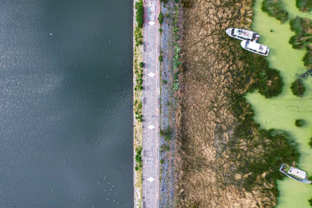Aerial Perspective: Marveling at the Road and Tranquil Waterscape
