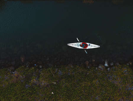 Man kayaking in ocean, San Francisco, California, USA