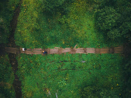 overhead top view of trail in the forest hiking concept