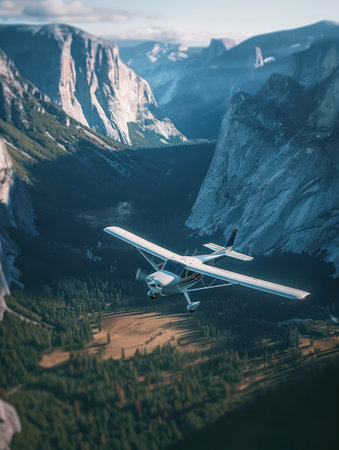 An aerial view of a yellow airplane flying over a lush, green rainforest with a winding river below. The dramatic clouds and vibrant colors create a sense of adventure and exploration.