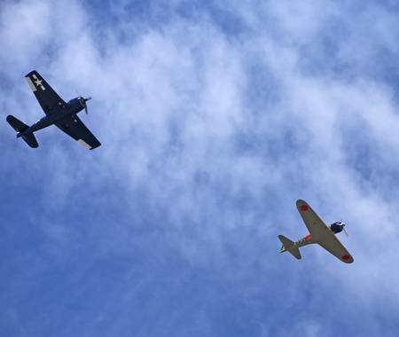 Two World War II era fighters re-enacting a dog fight