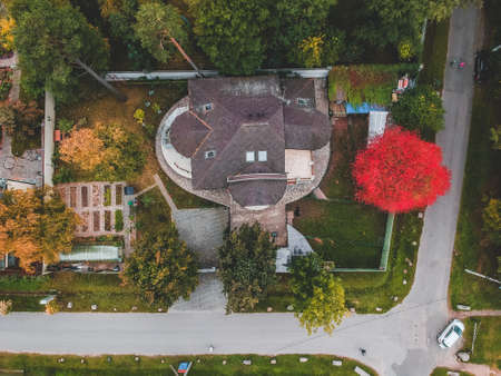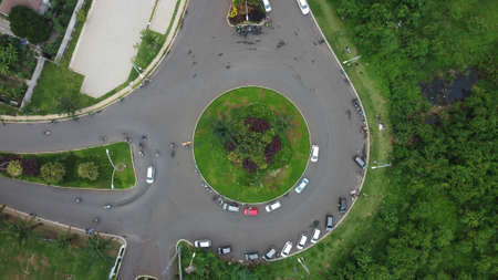 Bekasi, West Java, Indonesia - January 21 2020: Overhead aerial view of the circular shaped Bekasi highway, located in Summarecon Bekasi. Indonesia
