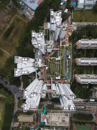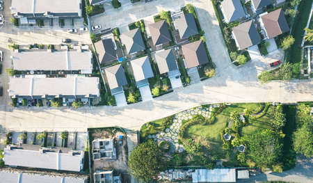 Housing estate or community in aerial view consist of garden, residential building. Real estate or property from land development by construction for sale, rent, buy, purchase, mortgage in Chiang Mai.
