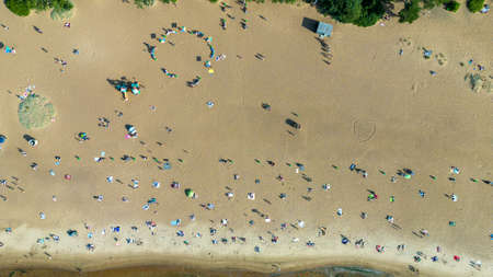 View from the height of the beach and vacationing people in Drozdy in Minsk.Belarus