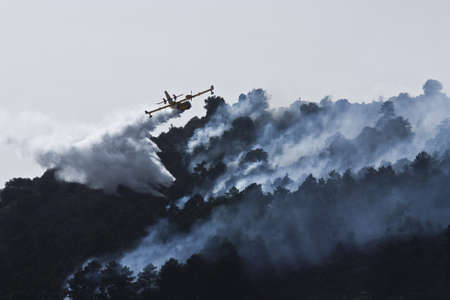 Ghisonaccia, Corsica, France, September 8, 2011, Canadair fighting against a forest fire.