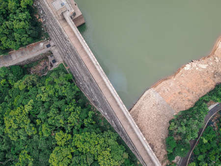 Aerial view of Dam of a reservoir in Hong Kong, nobody