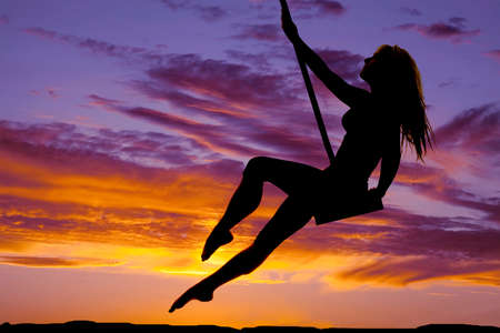 A silhouette of a woman swinging on her swing.