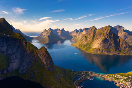 Mountains and fjords around the Reine fishing village in Lofoten islands, Norway