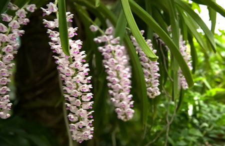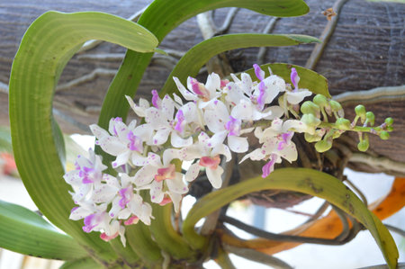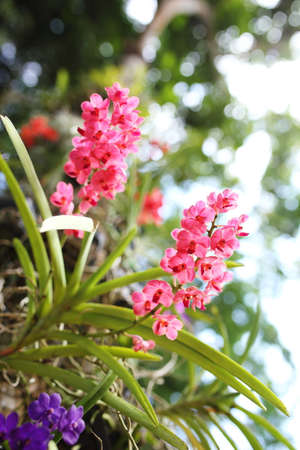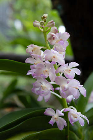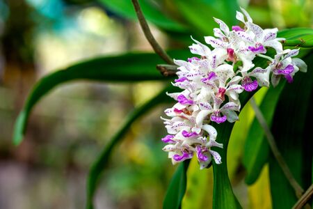 Epidendrum retusum L. or Rhynchostylis retusa (L.) Blume, Beautiful orchids in natural light background