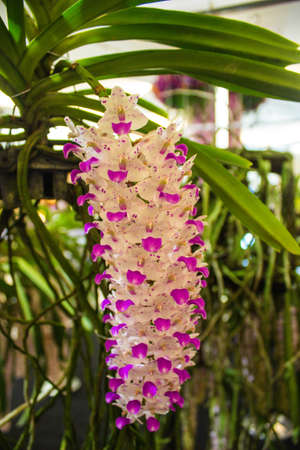 Thai Orchid Rhynchostylis gigantea orchid in the garden.
