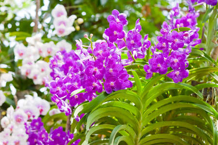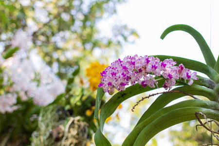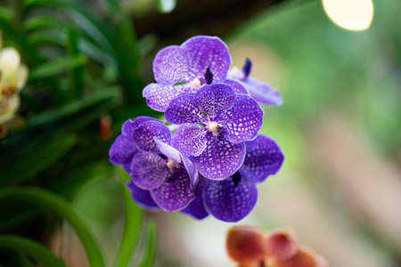 Orchid flower in orchid garden at winter or spring day for beauty and agriculture concept design. Vanda Orchidaceae.
