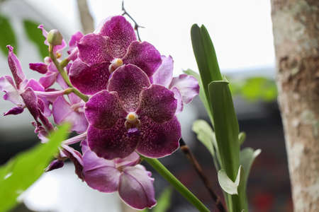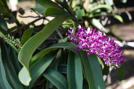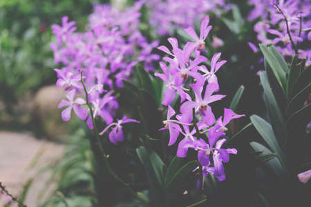 blooming purple orchid flower decorating in garden