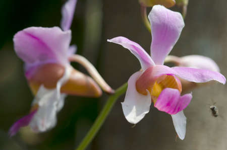 Beautiful pink and white orchid flower in the natural garden