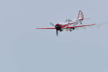 Helsinki, Finland - August 6, 2021: SNJ-3 Texan in Kaivopuisto Air Show