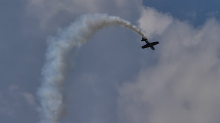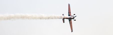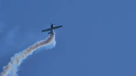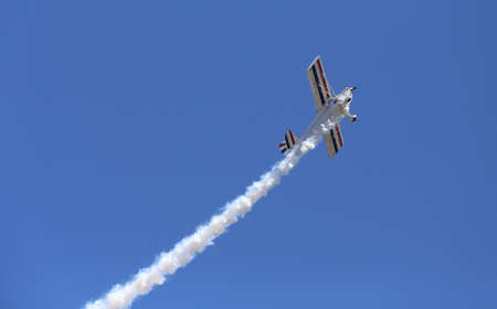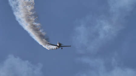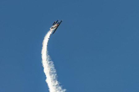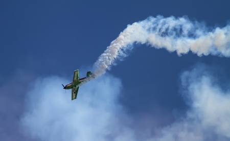 Propeller aerobatics plane in action with a big vapour trail in Aeromeeting Bitola 2011