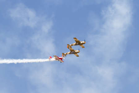 Acrobatic patrol Jacob52 during an acrobatic exhibition in flight at Matilla aerodrome, in Tordesillas, Spain