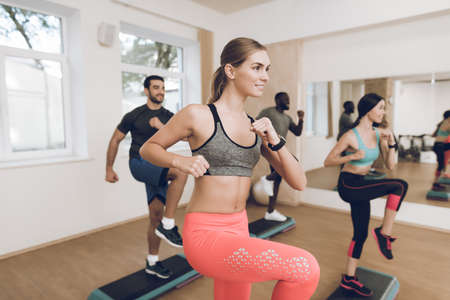 Young Sportive Woman Workout Exercising with Step Platform at Fitness Center or Gym. Fitness and Wellness Concept