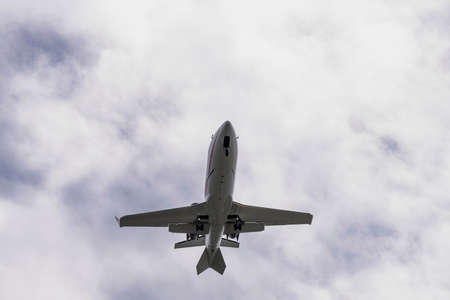 Victoria, Vancouver Island, British Columbia, Canada - August 25, 2021: Commercial Airliner airplane landing at the Airport during a sunny summer day.