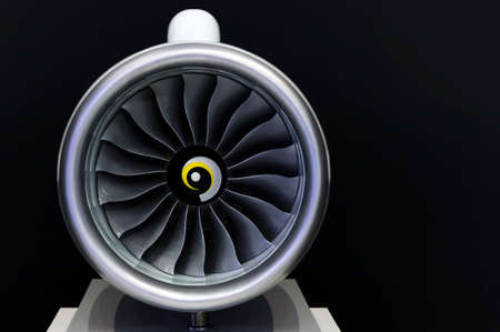 Jet engine turbine blades of plane, aircraft concept, aviation and aerospace industry, isolated on black background