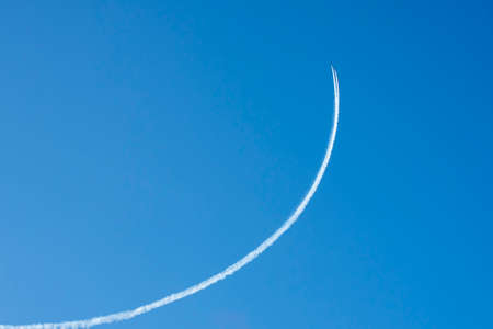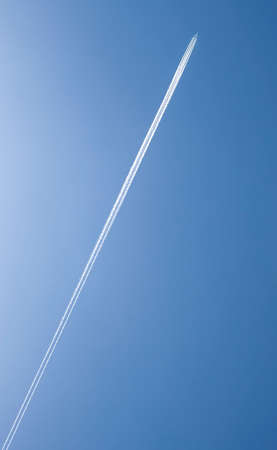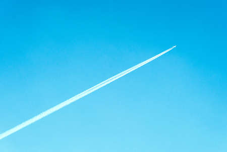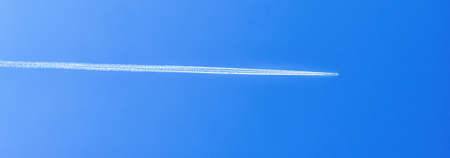 long trail of jet plane on blue sky. Aircraft on blue sky, Travel concept