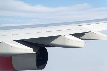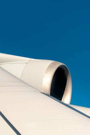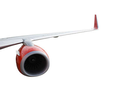 airplane or aircraft wing with single jet engine isolated on white background with clipping path.