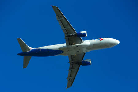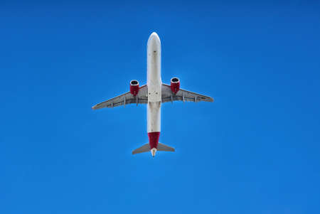 Plane taking off in El Prat Barcelona airport, Catalonia, Spain.