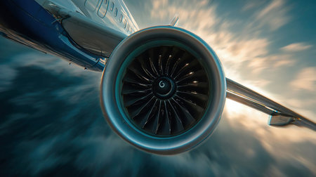 Patriotic Jet Engine in Motion Against Blue Sky Background for Dynamic Aviation Design
