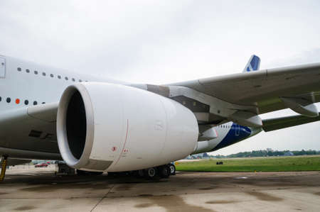 Powerful turbojet engine of modern passenger aircraft, Zhukovsky, Russia.