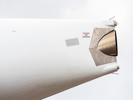 APU, Auxiliary Power Unit, exhaust pipe at the tail of passenger airplane.