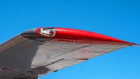 SINSHEIM, GERMANY - OCTOBER 16, 2018: Technik Museum. The right wing of white airplane on the open air.