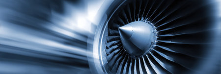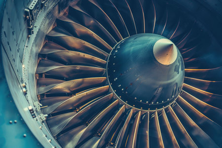 Close-Up of Modern Jet Engine Turbine Blades in Aircraft Industry
