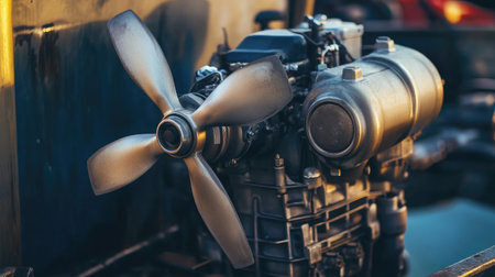 Close-up detail of a powerful jet engine, showcasing its intricate metal components and sophisticated engineering. Illustrates industrial technology, aerospace innovation, and the mechanics of modern aviation. Ideal for concepts related to power, speed, and advanced manufacturing.