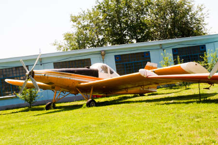 RUSSIA, MOSCOW - AUGUST 1, 2020: Small private single engine propeller airplane at regional airport.