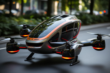 In a world where traffic congestion is a thing of the past autonomous air taxis effortlessly move through the city offering a truly harmonious transportation experience