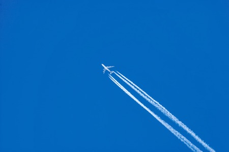 airplane and stern track in clear air blue sky
