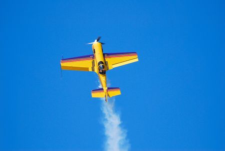 A plane leaving smoke on route