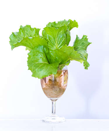 Fresh butterhead in wine glass over white background