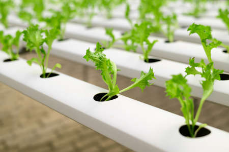 Organic hydroponic vegetable farm, selective focus, shallow depth of field