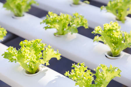 Organic hydroponic vegetable growing in water without soil at farm plant.