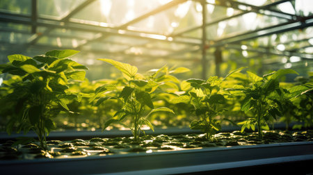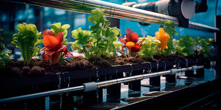 hydroponics with water pipe tube media environmental plant profesional photography ai generated