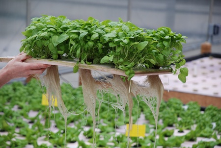 Hydroponic Basil Growing in Greenhouse