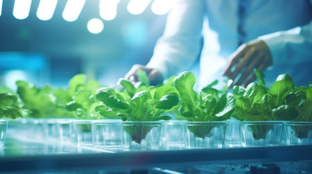 Baby Lettuce Grown with Aeroponic Technology generative by Ai.
